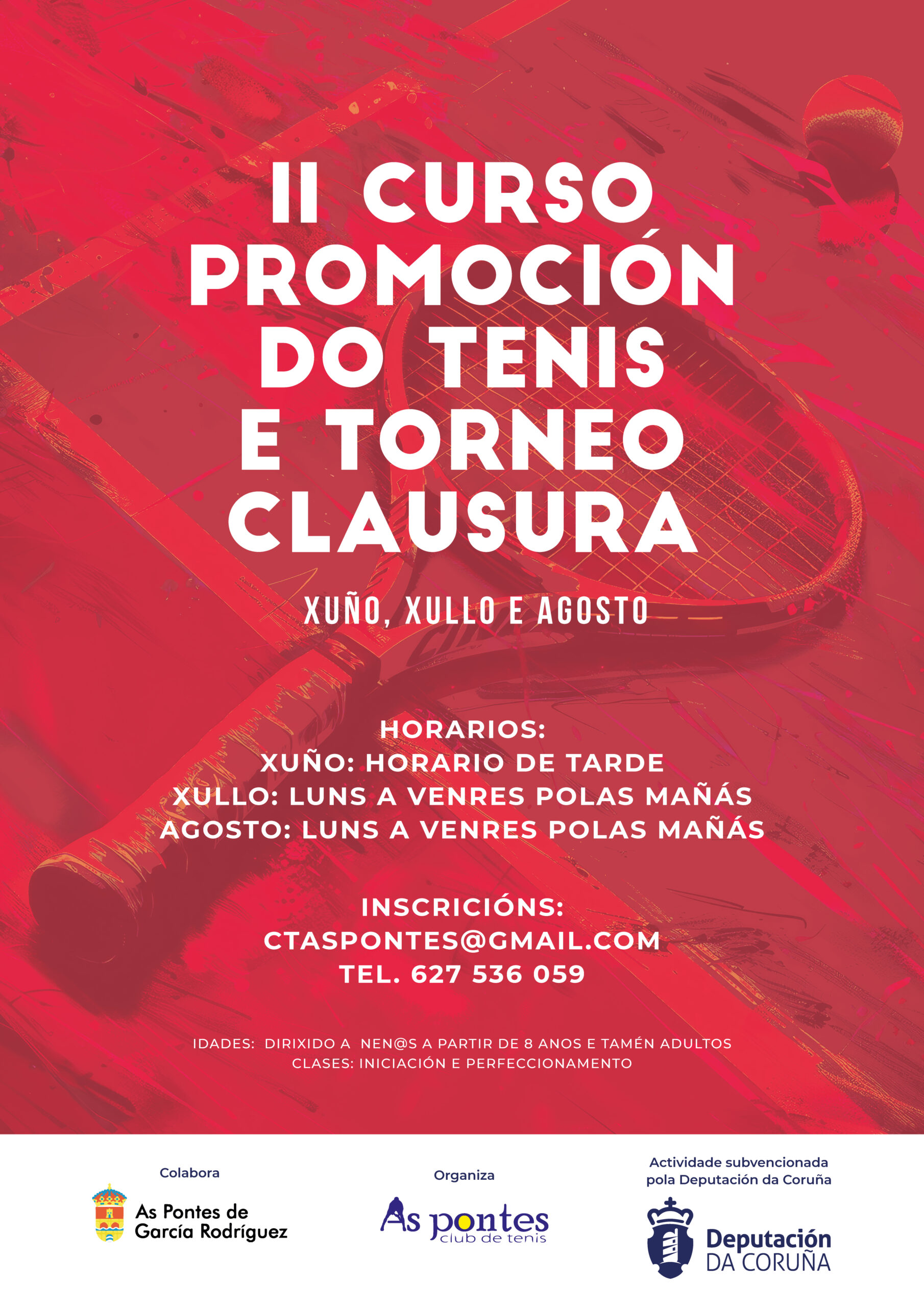 Outros eventos e colaboracións a destacar son o tradicional Torneo Festas do Carme (actualmente na vixésima cuarta edición), torneo entre escolas, o torneo por equipos (Sistema Copa Davis – Autonómico), cursos de promoción de tenis, clases de perfeccionamento e competición, tamén colaboramos con a asociación de ASPANAES das Pontes, ofertando a actividade de tenis.
